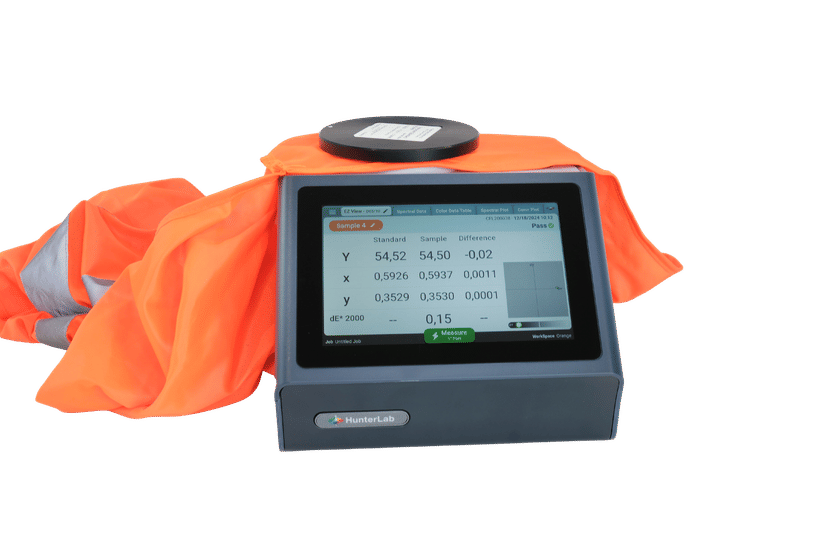 Textiles, such as high-visibility clothing, can be quickly and easily determined for their color