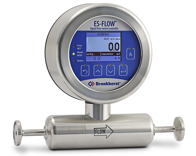 The Bronkhorst® ES-FLOW is designed to measure tiny volume flows (from 2 to 1500 ml/min based on H2O) using ultrasound in a small bore tube. A wide range of clear liquids can be measured independent of fluid density, temperature and viscosity.Due to the combination of a straight sensor tube with zero dead volume, self-drainability, orbital TIG-welding and hygienic connections, this flow meter can be used for hygienic applications. Wetted parts are made of stainless steel, except for the rubber gaskets at the Triclamp or flange connections. The exterior design is according to IP67. For non-hygienic applications, the instruments can also be equipped with compression type fittings.