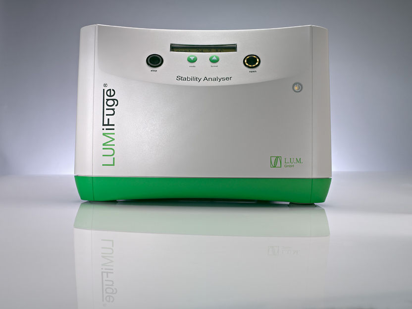 The new generation of the proven stability analyzer LUMiFuge® considerably simplifies quality control in industry by introducing the instability index in the SEPView® 6 software. The LUMiFuge, which uses the measuring principle of analytical centrifugation, is one of the standard devices for rapid dispersion characterization. Using the patented STEP-Technology®, the LUMiFuge simultaneously determines the separation of 8 different diluted or concentrated dispersions up to 2300 times faster, the results correlate very well with the sample behavior at earth gravity. The innovative analyzer thus realizes stability tests and shelf life determinations (according to ISO/TR 13097) of original dispersions significantly faster than in a test tube in the earth's gravity field.