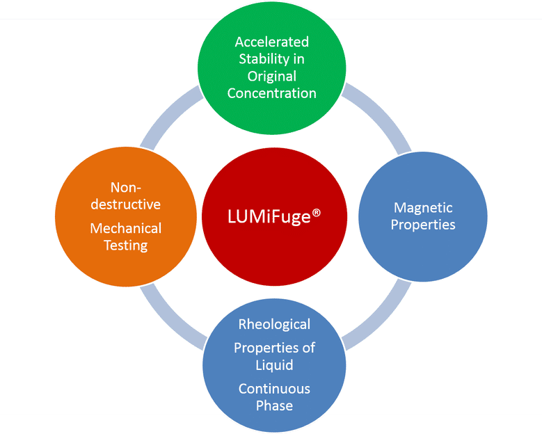 Stability & storage stability of emulsions & suspensions in original concentration quickly & reliably