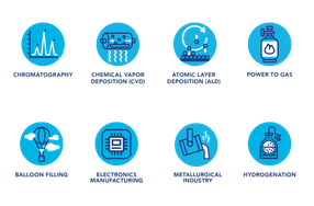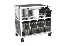 Reliability and constant high productivity are the requirements for today's and tomorrow's gas generators. This high-volume model range is the latest hydrogen generators from VICI DBS, covering the whole range of applications with high hydrogen purity of 99.99997%*. Four variants are offered with flow rates of 4.5l, 9l, 13.5l and 18l. The proven PEM (ProtonExchangeMembrane) technology with titanium cells guarantees maximum durability with minimum maintenance. The modular design also allows for modular use: should one of 4 cell units fail, the others can continue to produce. The unit is mobile and has a small foot print. Commissioning is simple and therefore cost-saving. The intuitive control system is operated via the 7" touch screen. Safety is always in focus! Therefore, the multi-liter generator itself has only a small hydrogen storage unit and an automated shutdown system, which reacts in case of internal and external hydrogen leakage, overpressure and too low water level.